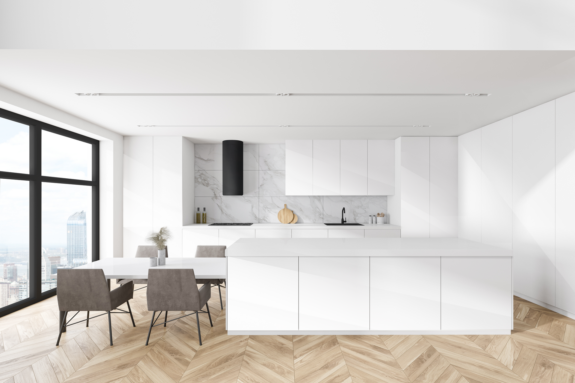 Back: ¼” back panel with ¾”x4” supporting braces top and bottom, constructed with wood dowels glued and clamped. End Panels: ¾” thick, plywood sides constructed with wood dowels glued and clamped. Hinges: Heavy duty steel concealed adjustable hinge, with soft-close mechanism. Shelves: ¾” thick, full depth plywood; fully adjustable. Toe Kick: 4” toe kick with 3” inset on all standard base and vanity cabinets.