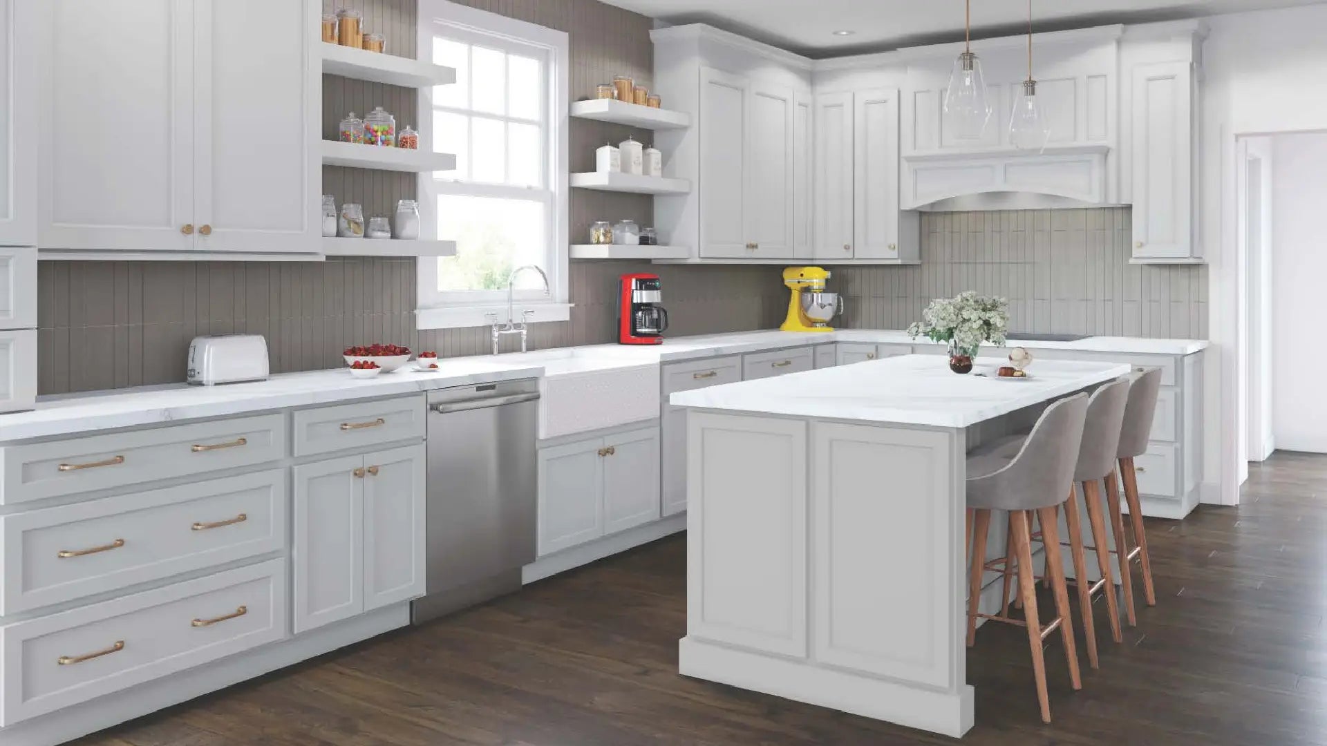 5-piece recessed panel drawer fronts ⅝” solid wood drawer box Tandem plus Blumotion 7/8 concealed drawer runners
