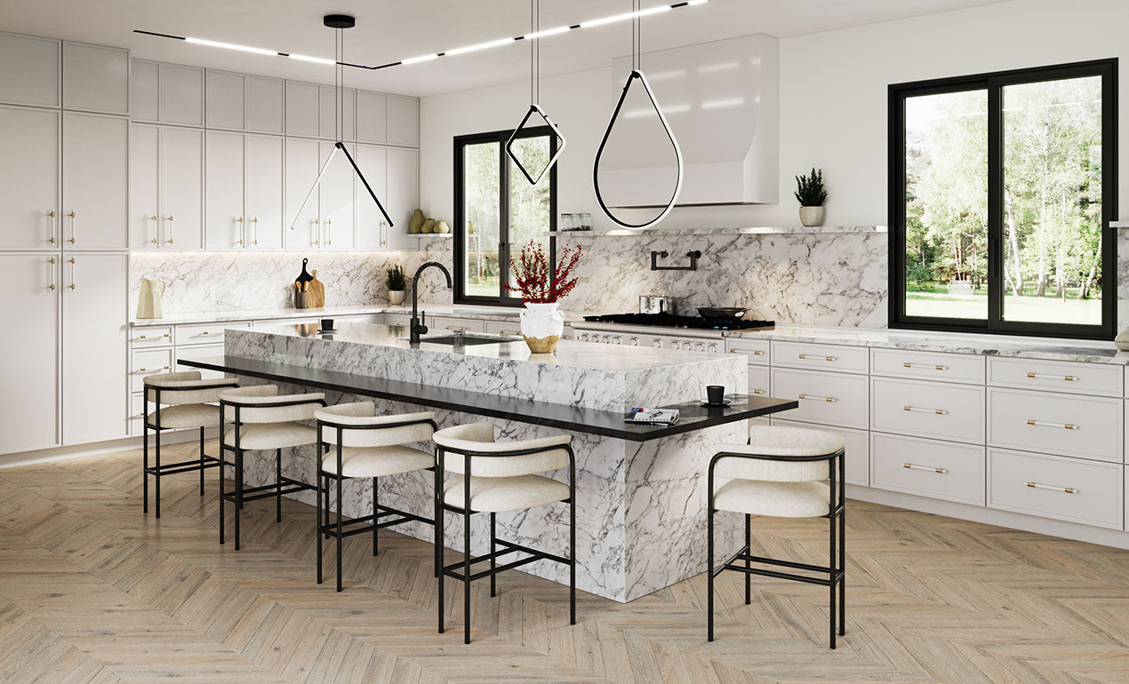Back: ¼” back panel with ¾”x4” supporting braces top and bottom, constructed with wood dowels glued and clamped. End Panels: ¾” thick, plywood sides constructed with wood dowels glued and clamped. Hinges: Heavy duty steel concealed adjustable hinge, with soft-close mechanism. Shelves: ¾” thick, full depth plywood; fully adjustable. Toe Kick: 4” toe kick with 3” inset on all standard base and vanity cabinets.